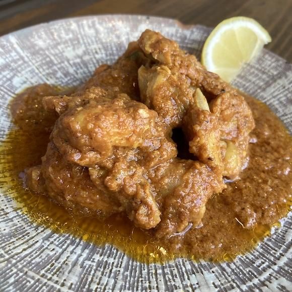 国産の鶏もも肉を使って、ヨーグルトや玉ねぎ、にんにく、たくさんのスパイスを使って肉の食感を残しつつ柔らかでジューシーなタンドリーチキンを作りました。当店のカレーにトッピングするのはもちろん、そのままおつまみとしても、たっぷり入った漬け込みソースをインドカレーのようにご飯にかけてもお楽しみいただけます。1パックに唐揚げぐらいのサイズが約4ピース入りです。