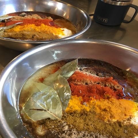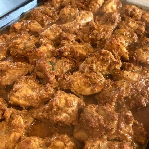 漬け込みソースもオーブンで一緒に焼いてパッキング。チキンとスパイスの旨味いっぱいのソースもインドカレーのようにして召し上がれます。